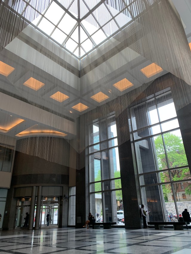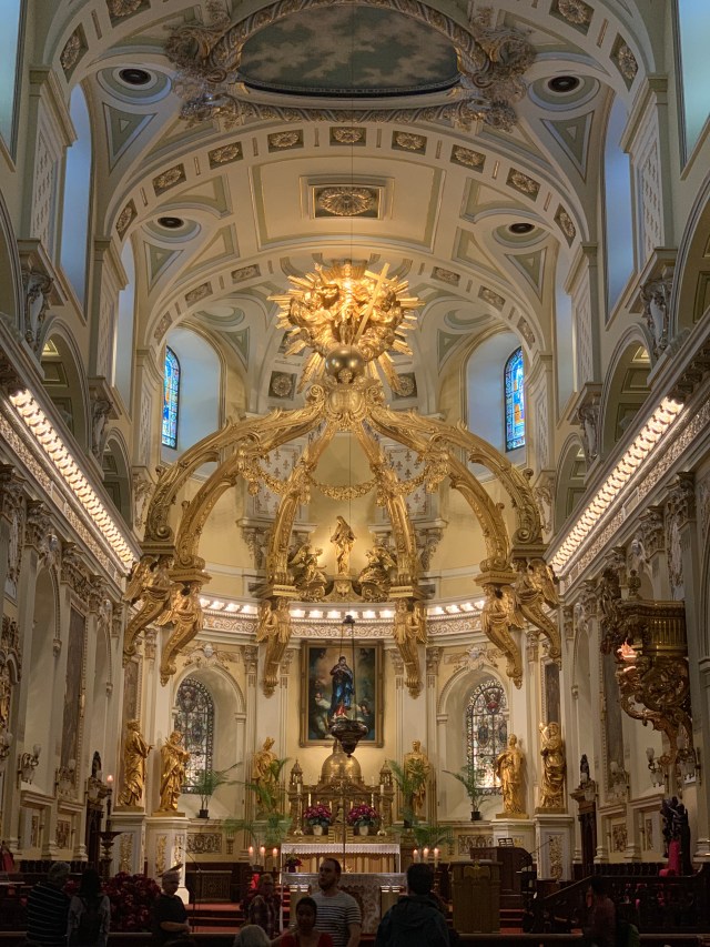 Yesterday we made the three hour trip from Quebec City to Montreal, and this morning we were able to explore our new home for the next five days. While our bus driver showed us many parts of Montreal, my favorite was the view of Montreal as a whole. During the middle of our tour, our bus driver took us to Parc du Mont-Royal. Parc du Mont-Royal is about 765 feet above the city and offers a wide expanse of green space inside the city. The best part of Parc du Mont-Royal is the platform that overlooks the city. The picture above was taken on this platform in the Parc du Mont-Royal and shows the amazing view. I love this view because we were able to see all the pieces of where we had just driven come together. A fun fact about where we are is that we are a forty-five minute drive from New York and an hour and a half drive from Vermont. However, it seems like we are in a completely different world and nowhere near the United States.